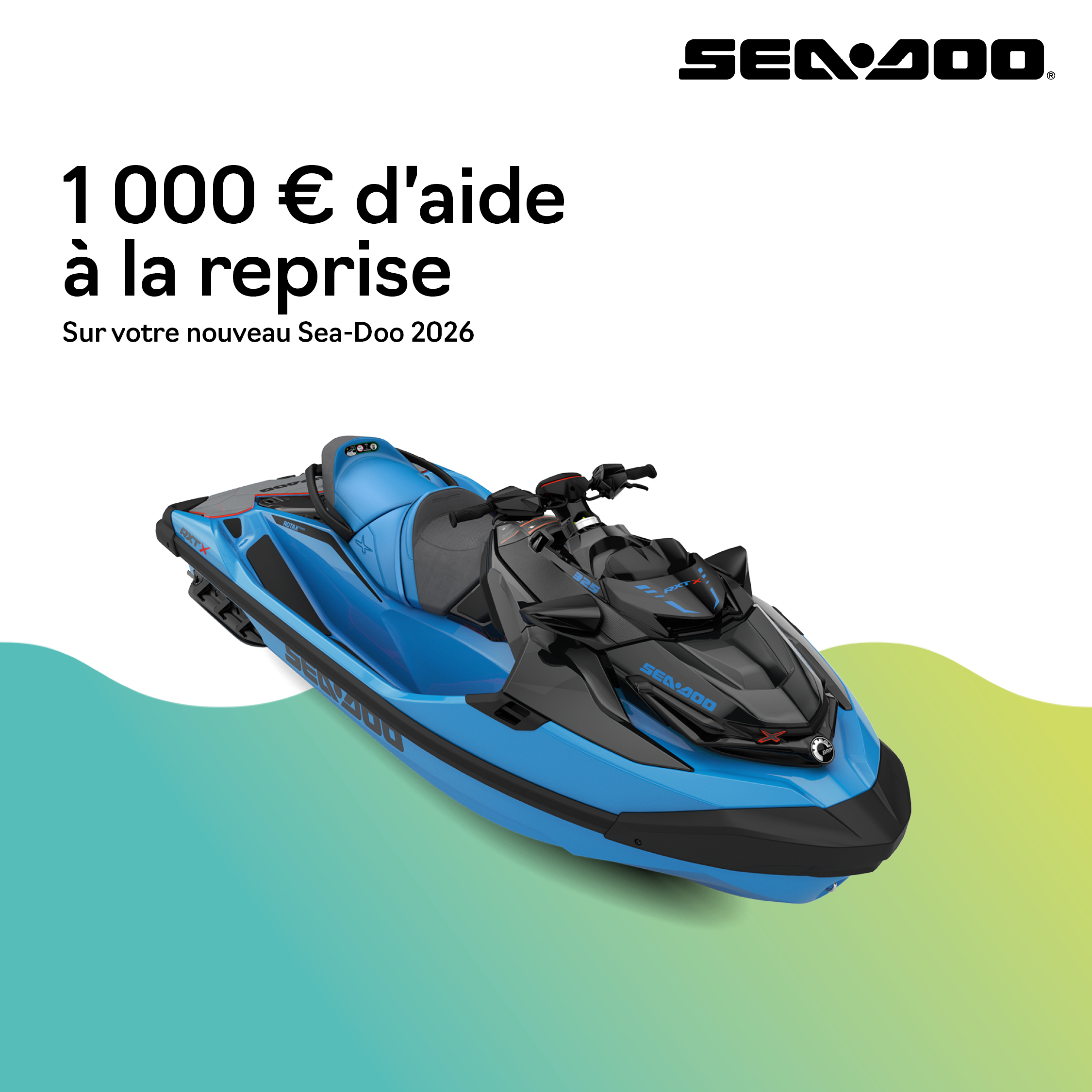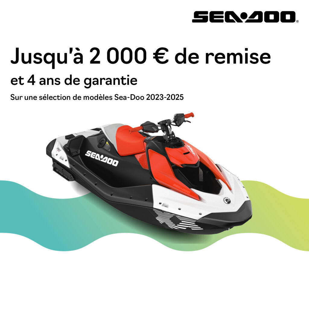 2 000 € de remise et 12 mois de garantie supplémentaire applicables sur Sea-Doo GTX, GTR, Explorer, RXT, GTI, Fish, RXP, Wake (2025)